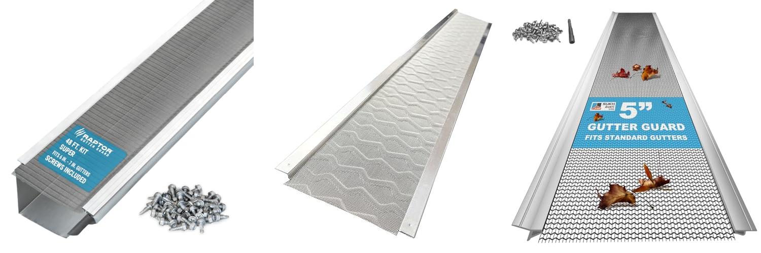 1. Raptor Gutter Guard – 48 FT. (Nominal) Contractor Grade Stainless Steel Micro-Mesh Gutter Guard Kit with Screws Included. Fits 6 in. & 7 in. Gutters. DIY-Friendly. (7.187 in. x 47.625 in.)