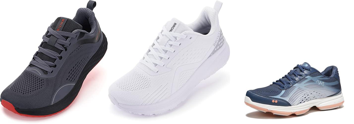 A: Some running shoes can be good. Look for ones with a wide toe box, excellent cushioning, and good arch support. Avoid minimalist running shoes.