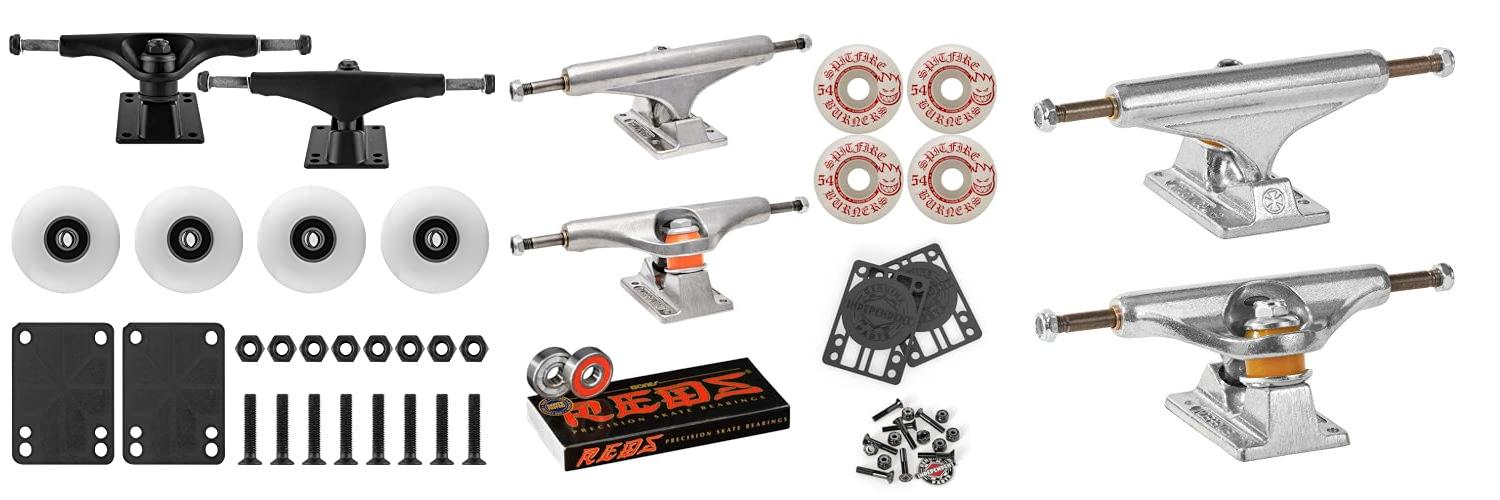 - The kit comes with 1″ Independent hardware and 1/8″ Independent riser pads, everything you need except the deck and grip tape.
